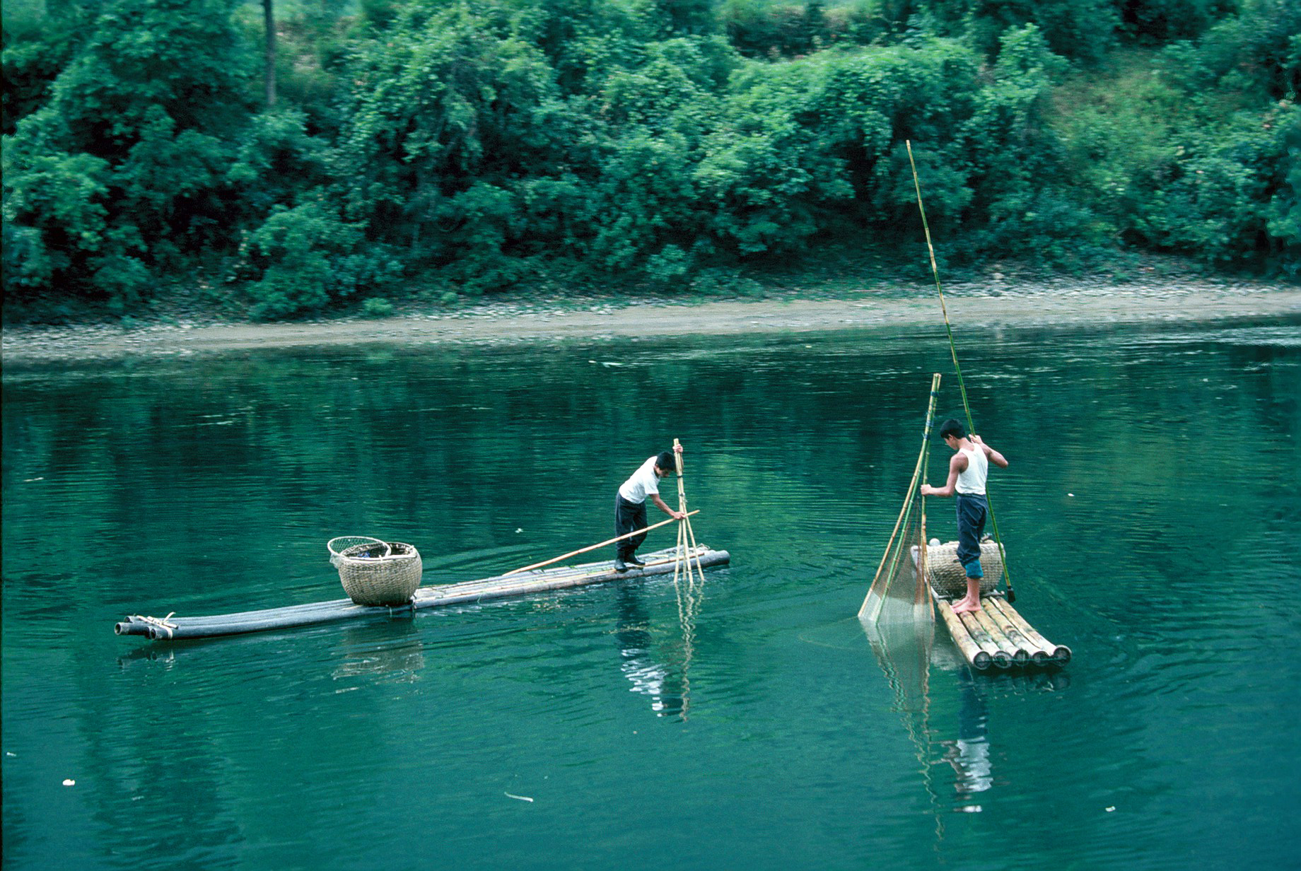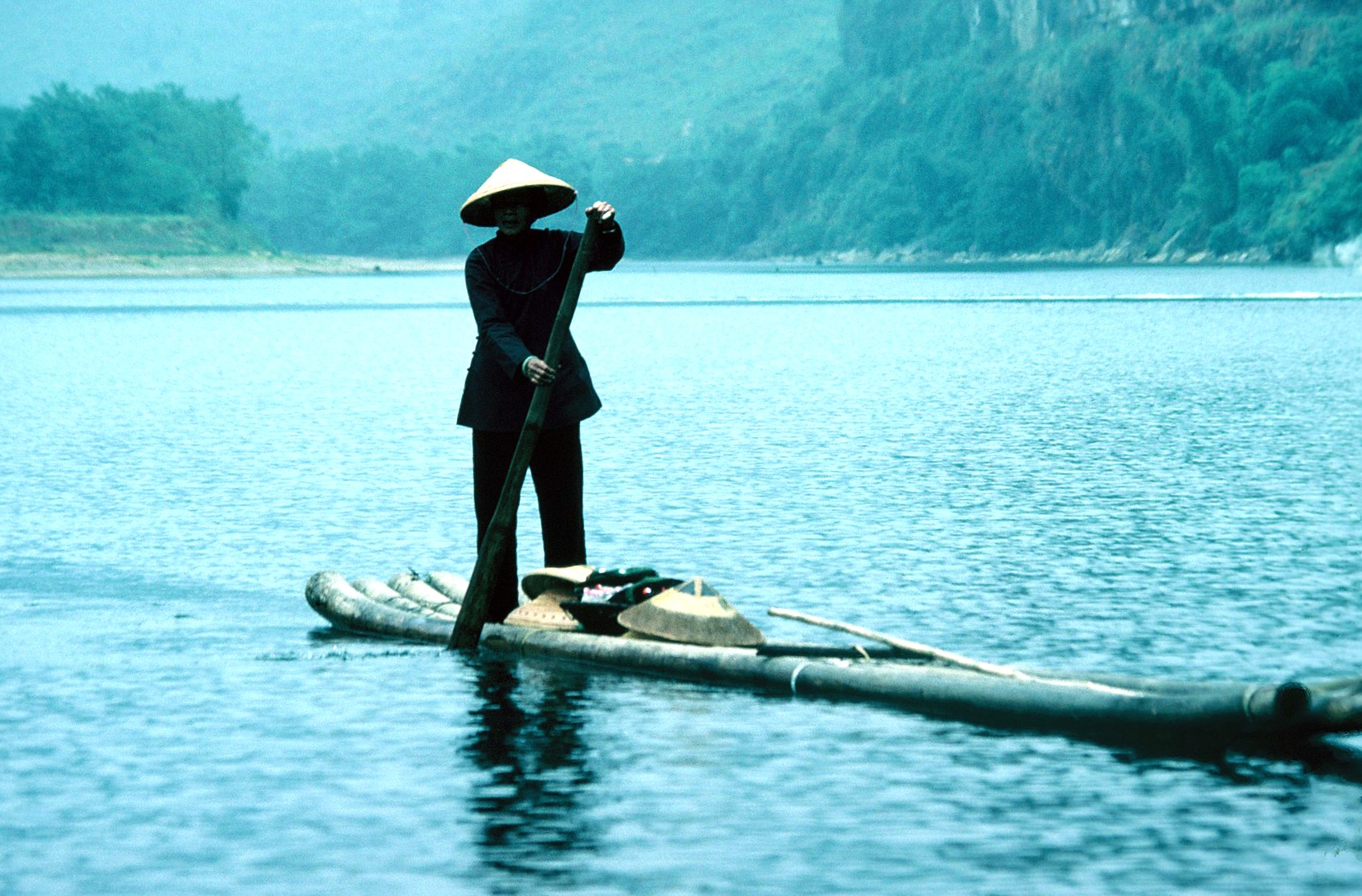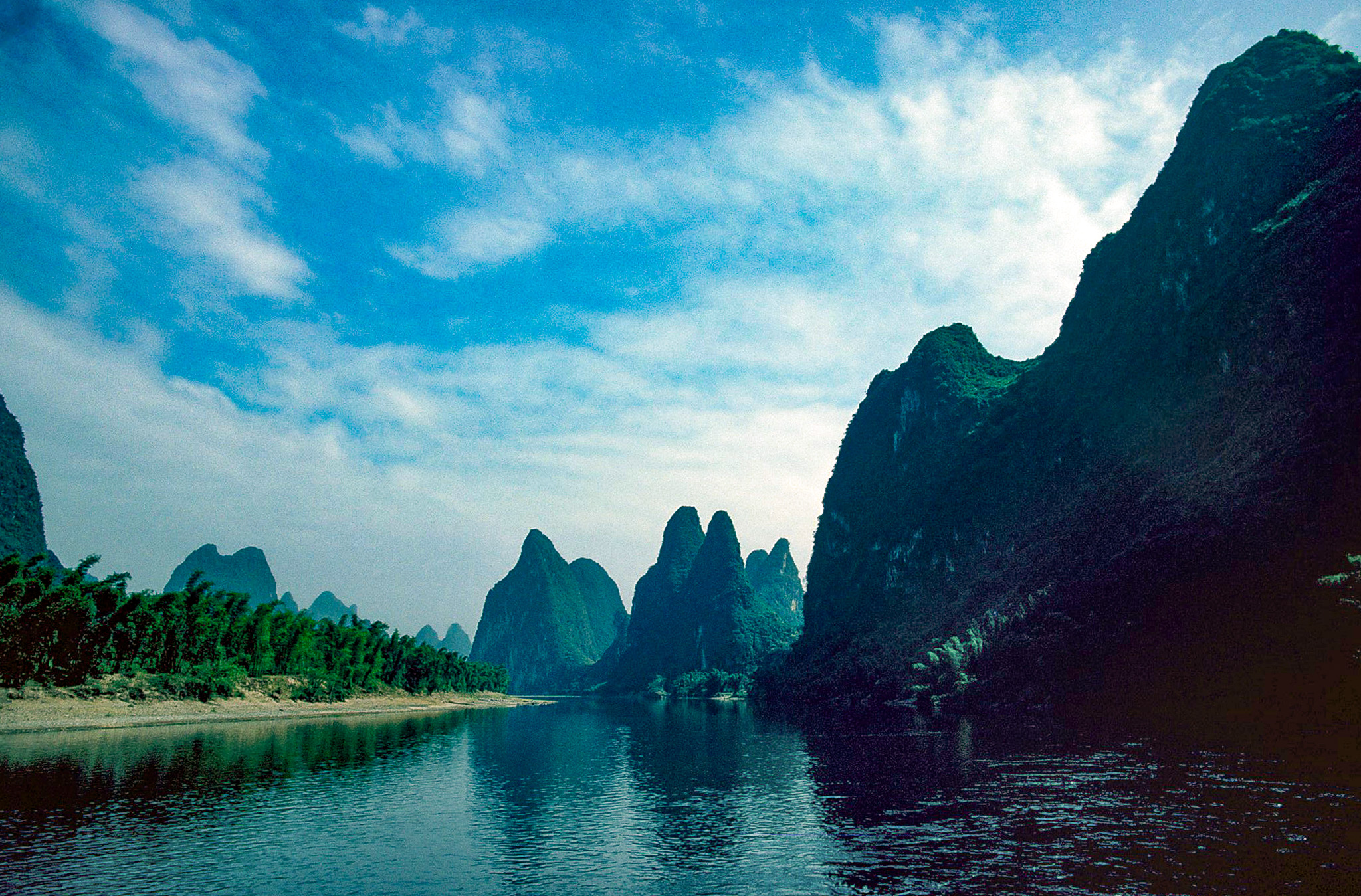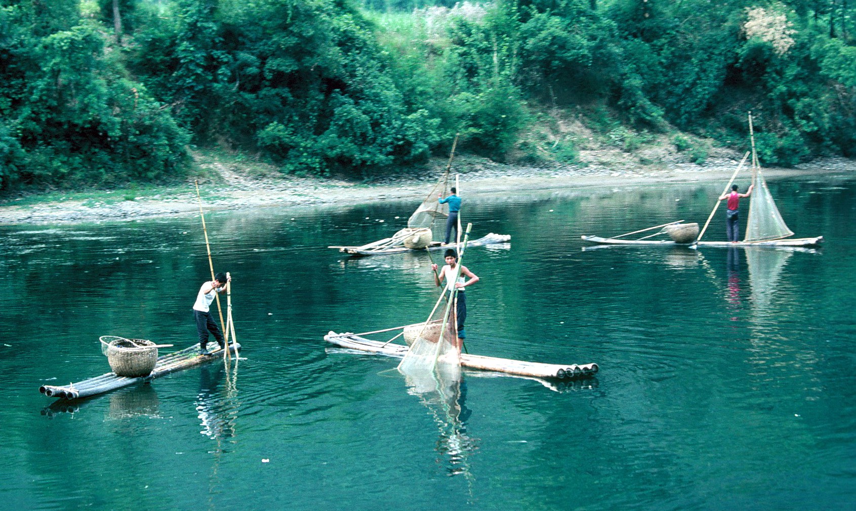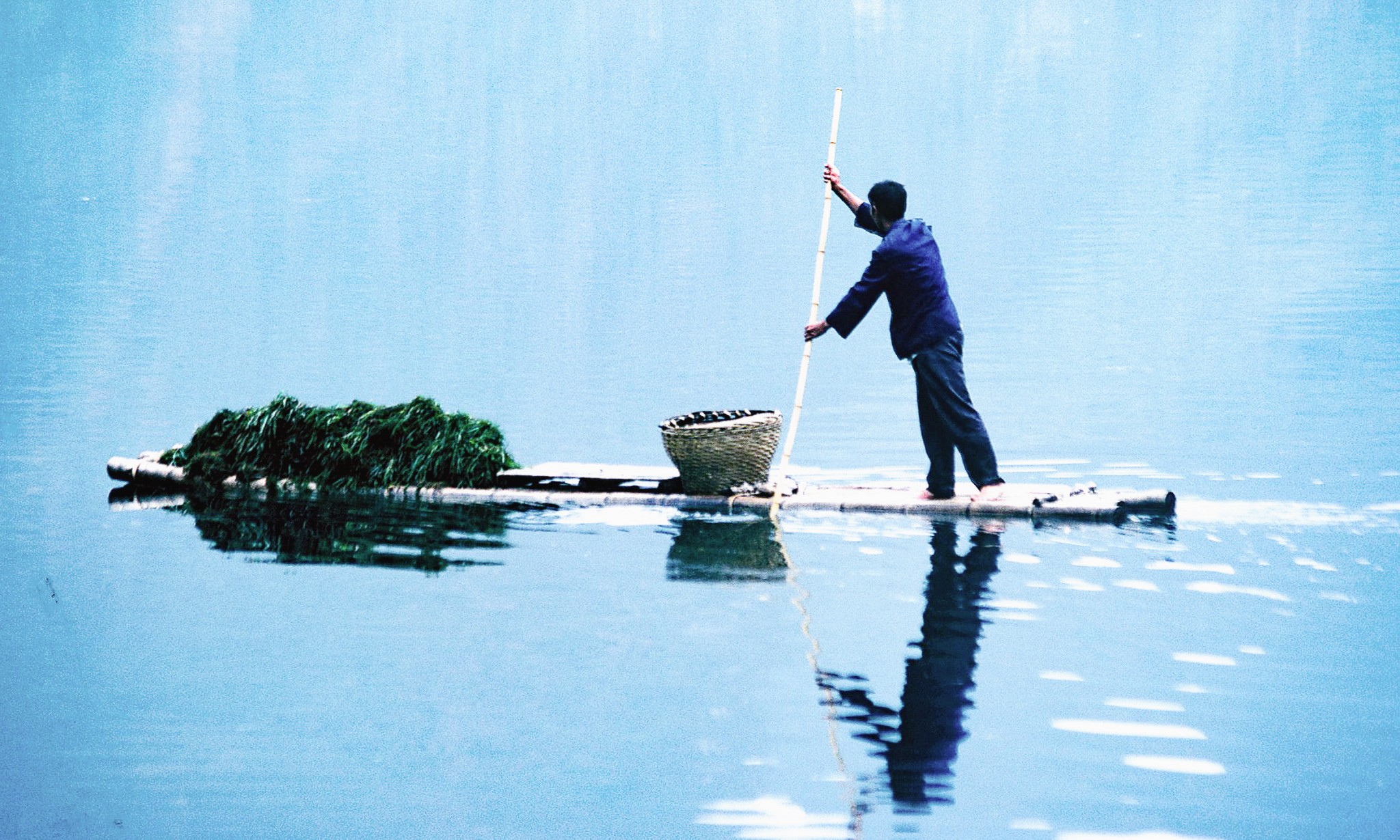 nebbie mattutine, il blu intenso del fiume Li, i pescatori con i